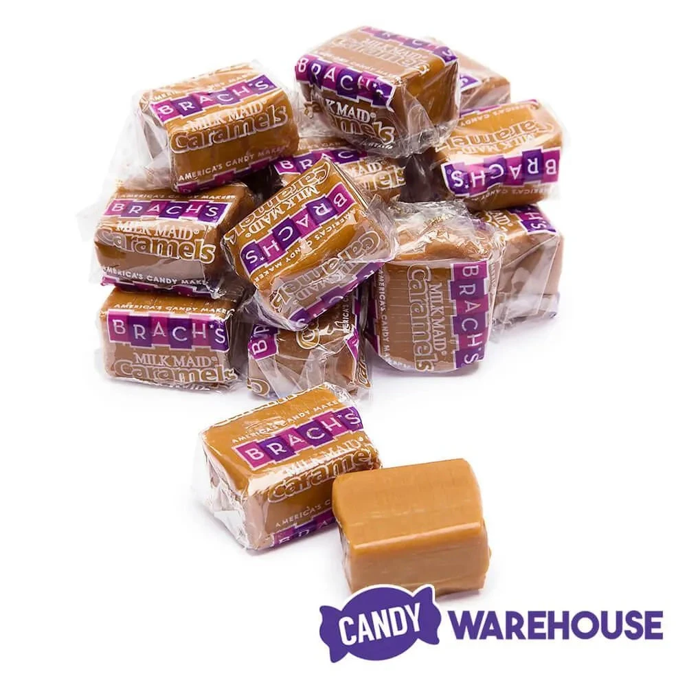 Bag contains 40 pieces of wrapped Brach’s Milk Maid Caramel Cubes.