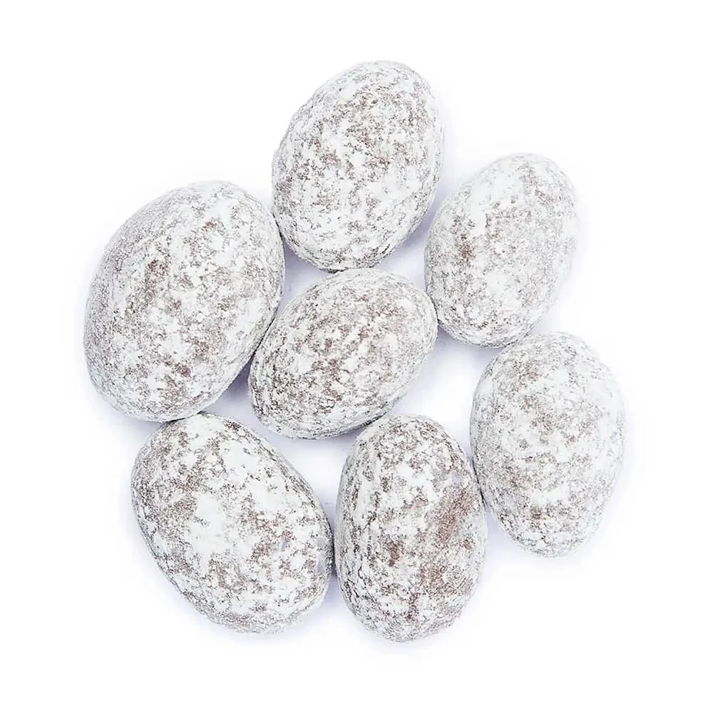 Fresh roasted premium grade pistachios are covered in crunchy butter toffee made with real dairy butter and a pinch of salt. The toffee coated nuts are then drenched in deluxe milk chocolate and dusted with powdered sugar.