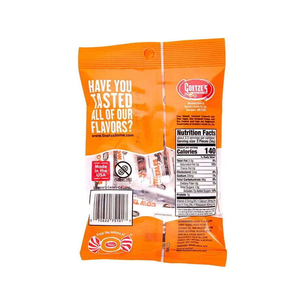 When you’re in the mood for an udderly delicious sweet vanilla treat, reach for a piece of Goetze’s mini Cow Tales caramel cream candy. The chewy caramel tube surrounds a rich cream center made from real milk for the ultimate snacking satisfaction. This 3-pound box contains 12 peg bags of Goetze’s caramel creams Cow Tales candy. Each bag holds 4 ounces of mini vanilla-flavored tubes, all individually wrapped for convenience and easy anytime snacking. Use these yummy miniature Cow Tales in birthday party favor bags, Christmas stockings, and Halloween handouts. The stick-shaped candies are also a fun addition to retro-themed events, bringing whimsy and nostalgia to every special celebration. Find over 1,000 more old-fashioned confection favorites here on Candy Warehouse, where we make it easy for you to shop by the decade as you time travel back to carefree days.