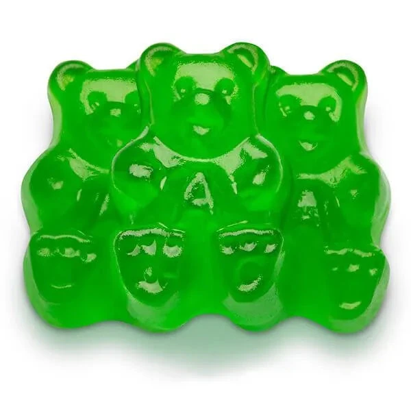 Like polar bears that have spent too long in the pool, these green gummi bears seem to bear an unnatural hue for an ursine mammal. But unlike the chloriney taste you might expect from the aforementioned swimming sow, the chewy treats have a brilliant taste of green apple! A great decoration piece for color-specific parties, you can still feel free to gorge yourself upon these little green grizzly gummies — they feel most at home in your tummy!