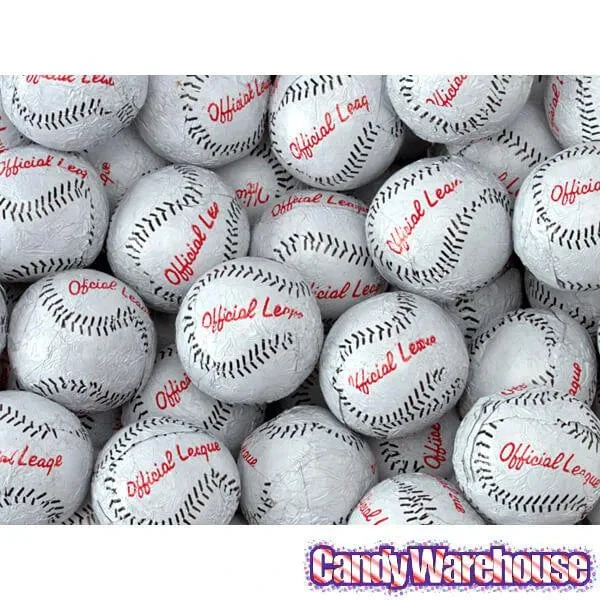 Box contains 5 pounds of Foil Wrapped Milk Chocolate Baseballs Candy.