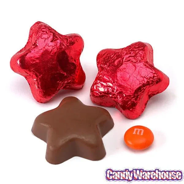 Decadent milk chocolate stars wrapped in metallic foils of bright red!
