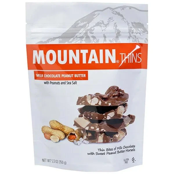 Bag contains 5.3 ounces of Milk Chocolate Peanut Butter Mountain Thins Candy.