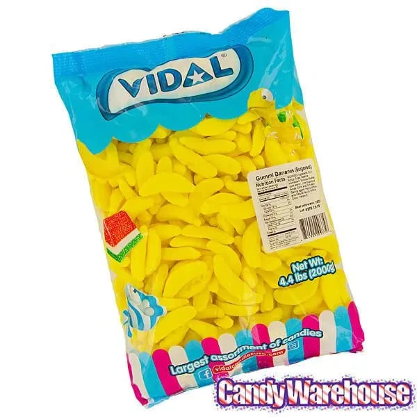 Bag contains 2 kilograms (about 4.4 pounds) of Yellow Gummy Banana Candy.